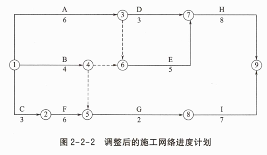 4.调整后的施工网络进度计划,如图2-2-2所示。