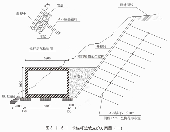 1.本设计为尾矿库排洪渠道土方开挖边坡支护长锚杆(10m)方案。