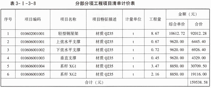 (2)轻型钢屋架综合单价分析表见表3-I-3-3。