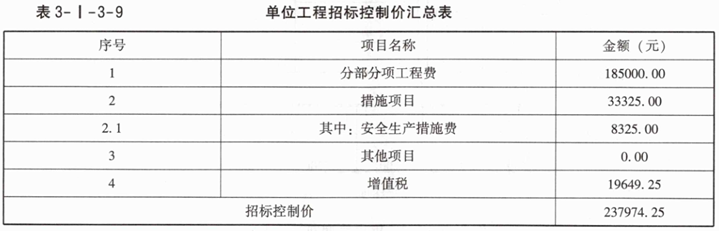 (2)单位工程招标控制价汇总表见表3-I-3-9。