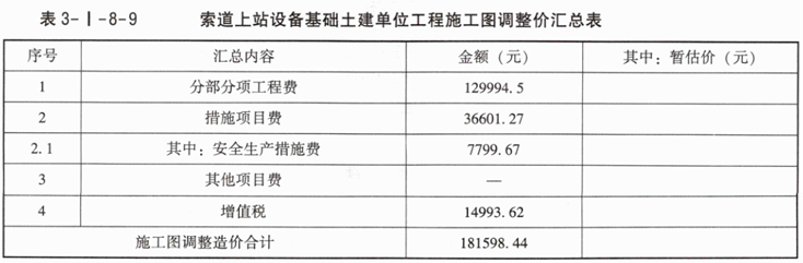 4.模板工程费没有变化,安全生产措施费是分部分项工程费的6%,增值税税率为9%,完成索道上站设备基础土建单位工程施工图调整价汇总表。