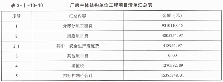 4.根据问题3的计算结果和下面的已知信息,按《建设工程工程量清单计价标准》GB/T50500—2024的计算规则,在答题卡表3-I-10-6中编制该厂房主体结构单位工程项目清单汇总表,已知措施项目费中安全生产措施费占分部分项工程费的4.5%,其他措施费为4386300.00元;其他项目费用为零;增值税税率按9%计取。