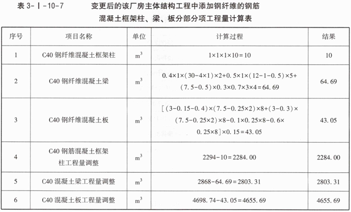 1.根据图3-I-10-1、图3-I-10-2所示内容和表3-I-10-1中的有关数据,按《房屋建筑与装饰工程工程量计算标准》GB/T50854—2024的计算规则,在答题卡表3-I-10-3中列式计算设计变更后的该厂房主体结构工程中添加钢纤维的钢筋混凝土框架柱、梁、板分部分项工程量,并调整原有钢筋混凝土框架柱、梁、板实体工程分部分项工程量。(注:计算与钢纤维混凝土梁共同浇筑的钢纤维混凝土框架柱长度同相交梁高度)