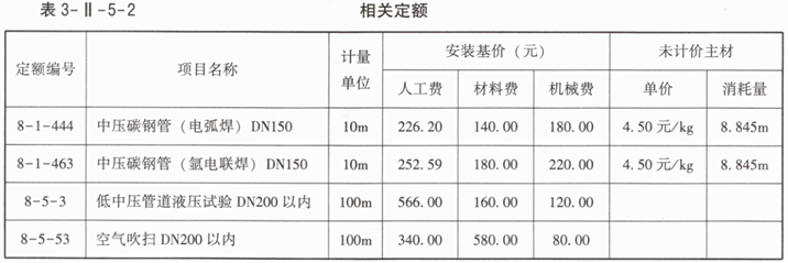 3.φ325×8低压管道综合单价=[262.03+63.02+257.60+262.03×(20%+10%)+9.36×62.54×6.50]÷10+[623.35+204.60+24.62+623.35×(20%+10%)]÷100+[205.63+272.94+32.60+205.63×(20%+10%)]÷100=462.77(元/m)