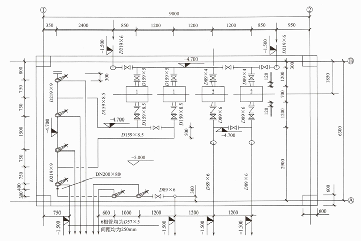 中压管道:1+1+1.5+0.5+0.5+[(2.25-1.15)+(0.8+1+0.65)+(2.25-1.15)]×2=13.80(m)