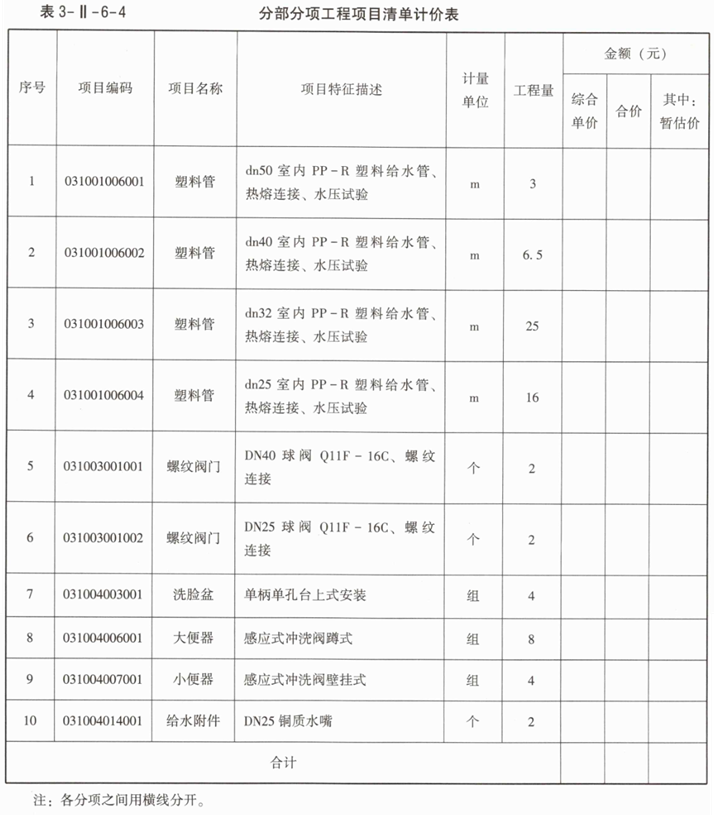解析:1.计算卫生间给水管道和阀门安装项目分部分项清单工程量: