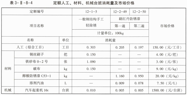 4.相关定额人工、材料、机械台班消耗量及市场价格见表3-Ⅱ-8-4。