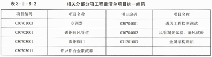 3.相关分部分项工程量清单项目统一编码见表3-Ⅱ-8-3。