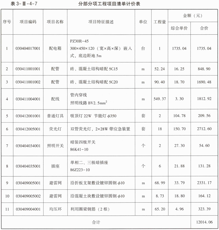 3.编制配电间电气安装工程分部分项工程项目清单计价表,见表3-Ⅲ-4-7。
