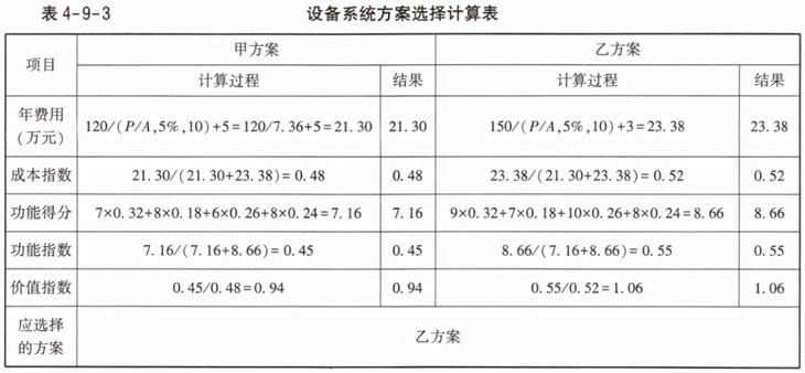 1.完成表4-9-2设备系统方案选择计算表的填写。