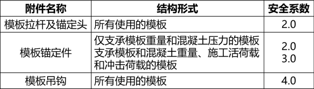 模板附件的最小安全系数