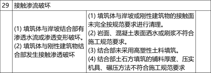 A.刚性建筑物表面刷浆不符合规范要求 B.刚性建筑物有裂缝 C.结合部未采用高塑性土料填筑 D.土料填筑未均衡上升 E.反滤料填筑不符合规范要求