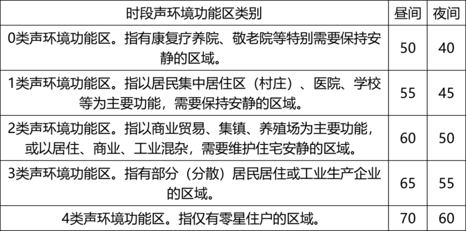 声环境功能区类别及施工场界噪声限值