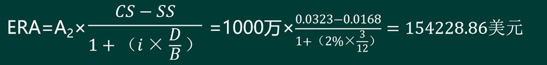 假设某公司与某银行签订一份1合约汇率为6.345000万美元的1×4买入远期外汇综合协议(SAFE),合约汇率为6.345,合约约定的汇差即CS为0.0323,而到期日的基准汇率为6.4025,结算汇差即SS为0.0168。利率水平为2%,则以汇率协议(ERA)的结算方式下,银行支付( )。