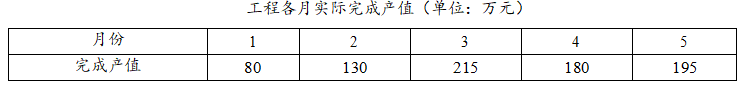 (5)材料价差调整按规定进行,最后实际上调各月均为 10%,竣工结算时一次性支付。各月完成的实际产值如下表所示: